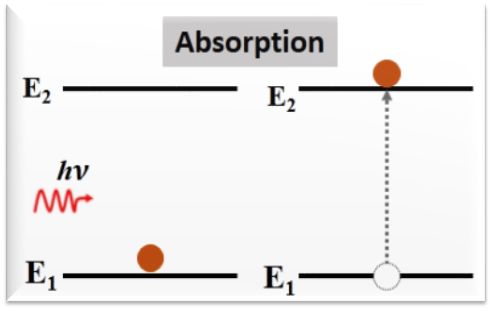 If a photon of energy E2 – E1 = hʋ interacts with an atom present in the ground state, the atom gets excited form the ground state to excited state by absorbing the photon energy.