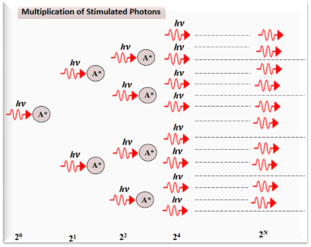| 4. | One photon is emitted in spontaneous emission. | Two photons are emitted in stimulated emission. |
