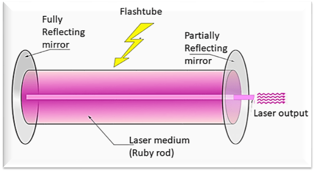 - After gaining enough strength, laser beam of wavelength 8400Å will emerge out as output.