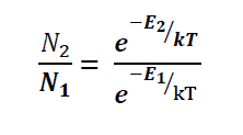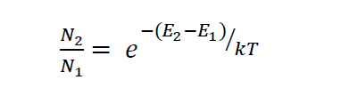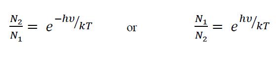 At thermal equilibrium, population is maximum in the ground state and decreases exponentially as one goes to higher energy states. If N1 and N2 are the populations in two states, a lower state E1 and a higher state E2 we have:
