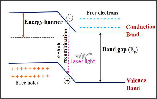 This electron-hole recombination is the basic mechanism responsible for emission of light in laser diodes.