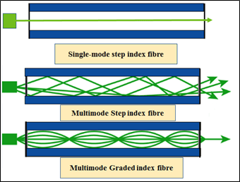 1. Laser light is used in optical fiber communications to send information over large distances with minimum losses.